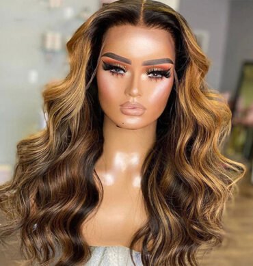 Ombre Highlight Body Wave Honey Blonde with Dark Roots 6×5 13×4 HD Lace Full Frontal Glueless Wig