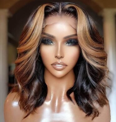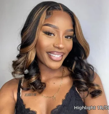 Highlight Color Short Body Wave Human Hair 6×5 13×4 HD Lace Front Wig Glueless Shoulder Length 200% Density