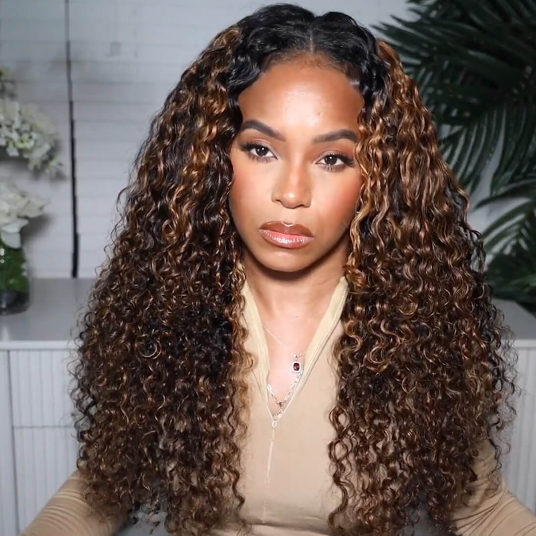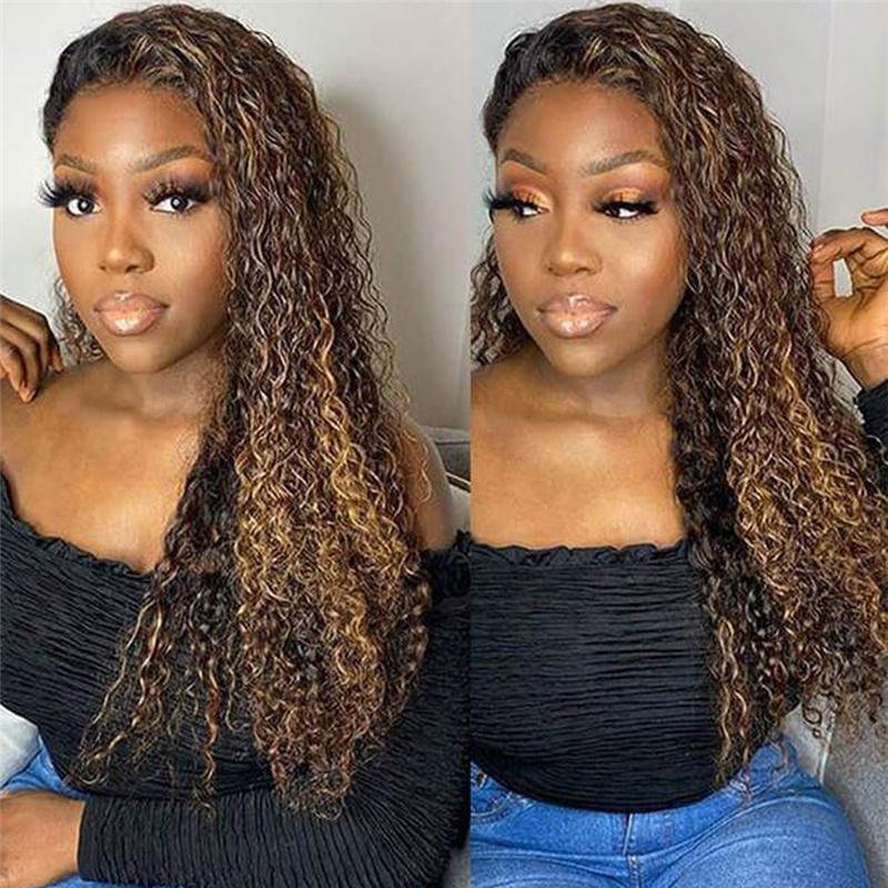 Highlight Curly Wig 6×5 13×4 HD Lace Front Wig Mix Color 1B/30 Human Hair