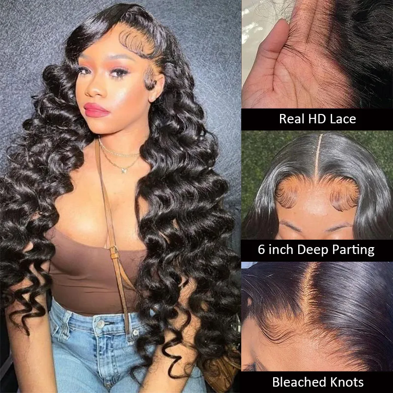 Pre Bleached Knots | Loose Deep Wave 13×6 Glueless HD Lace Wig 100% Human Hair Pre Plucked Hairline