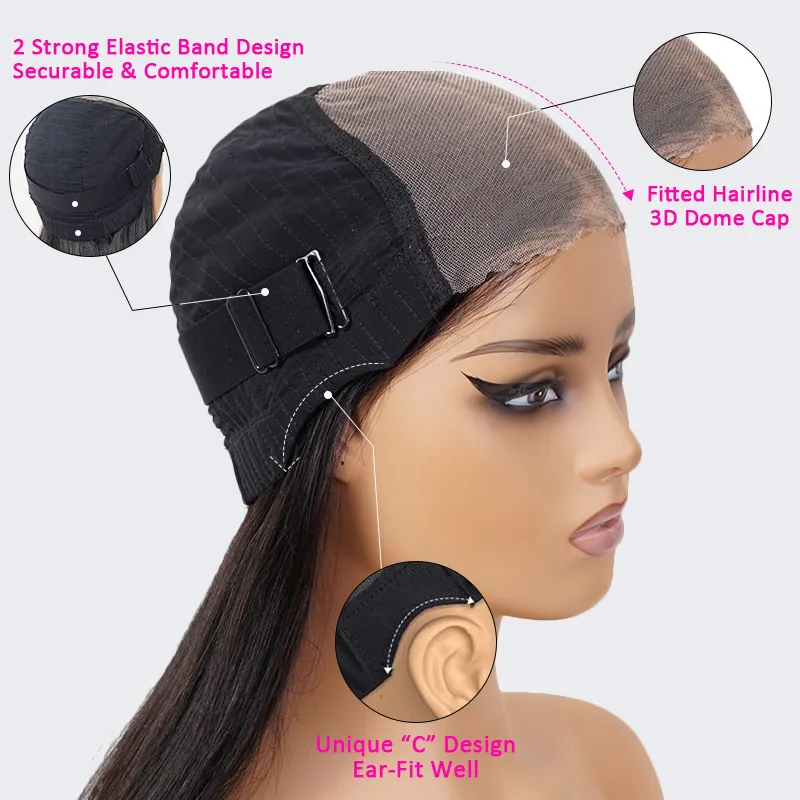 ✔️ 3D Dome Fitted Cap, Real Glueless Wig